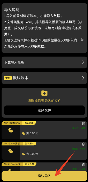 金价一指查怎么导入数据?我们可以在金价一指查“我的”页面中找到导入数据的功能,与直接录入攒金记录相比,导入数据支持一次性导入最多500条数据,对于需要批量录入攒金数据的用户来说,可以节省极大的时间。此外,如果我们想更换黄金记录APP,也可将其他黄金记录平台的导出数据导入金价一指查中。总而言之,导入功能可以帮助我们进行高效、准确的数据迁移、录入。以下是金价一指查数据导入步骤,有需要的朋友们可以跟着步骤一起操作起来~