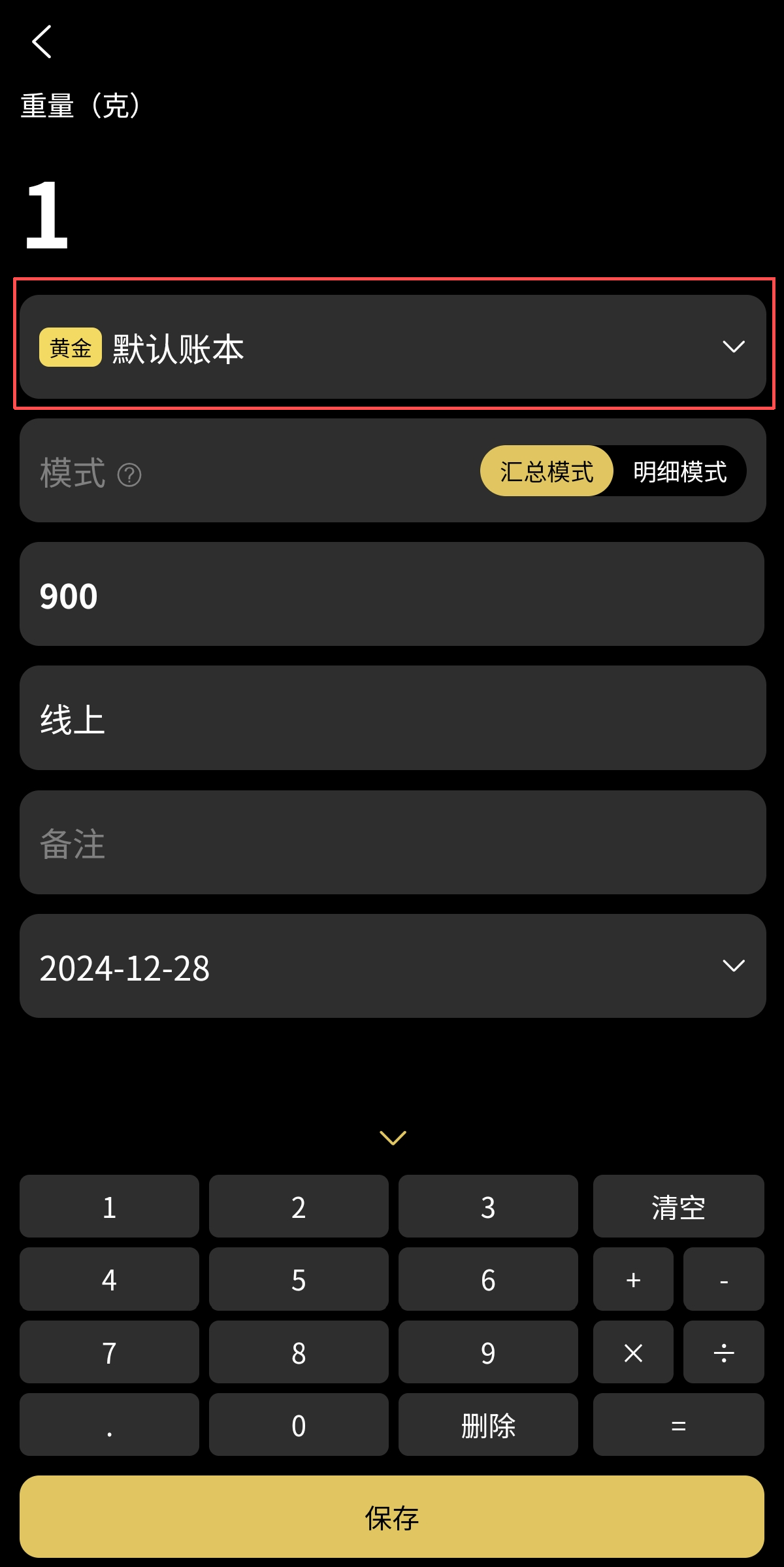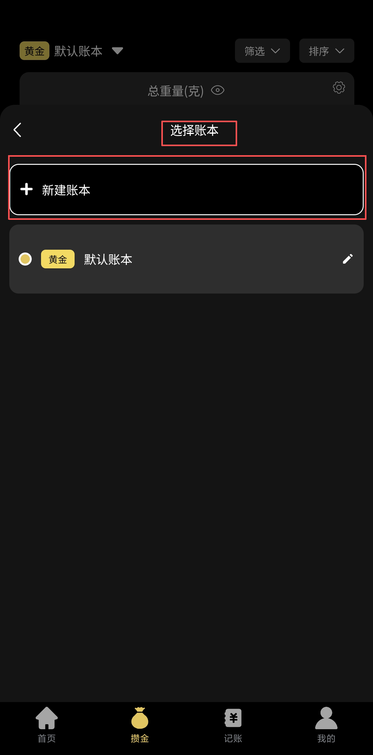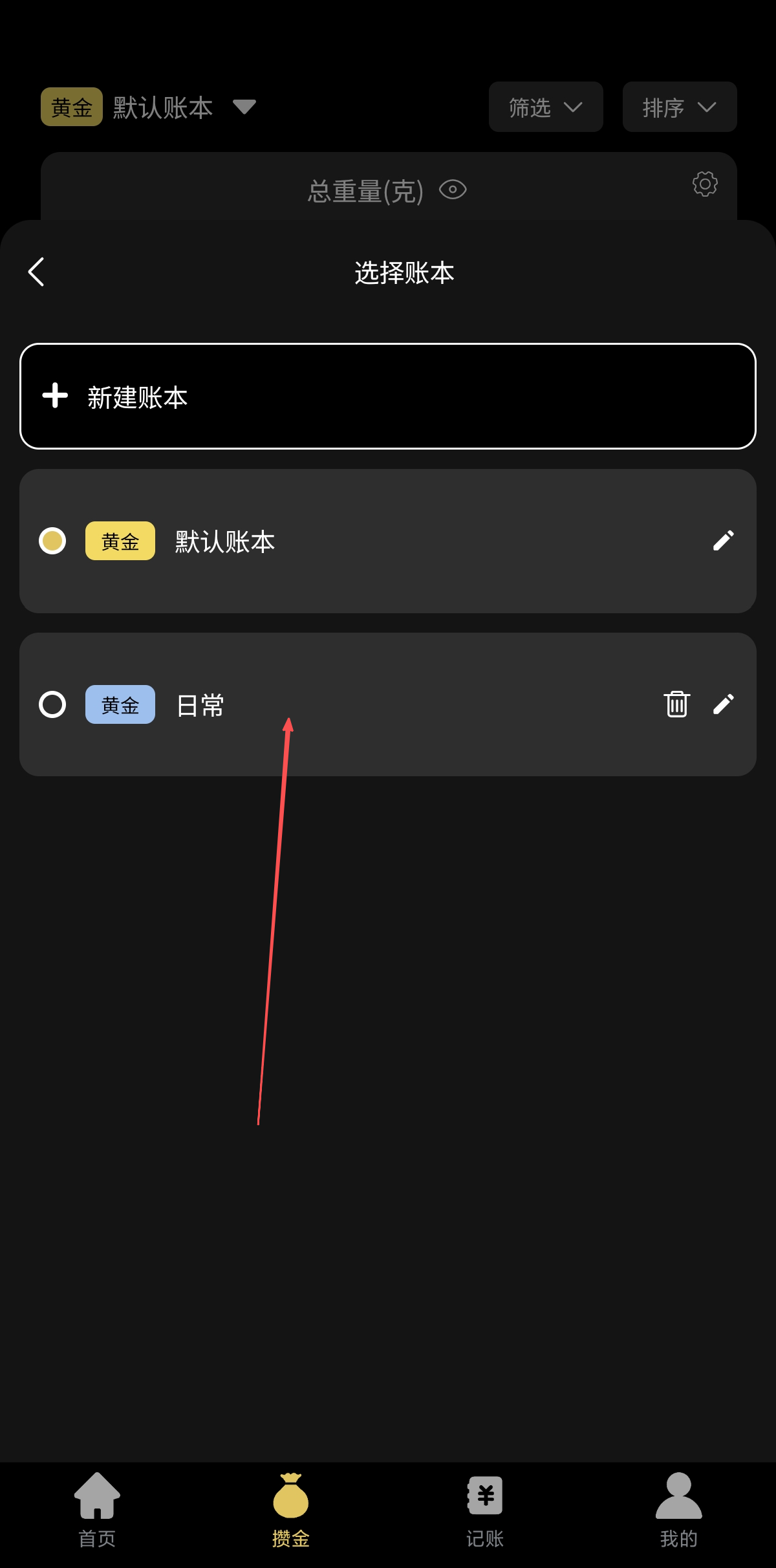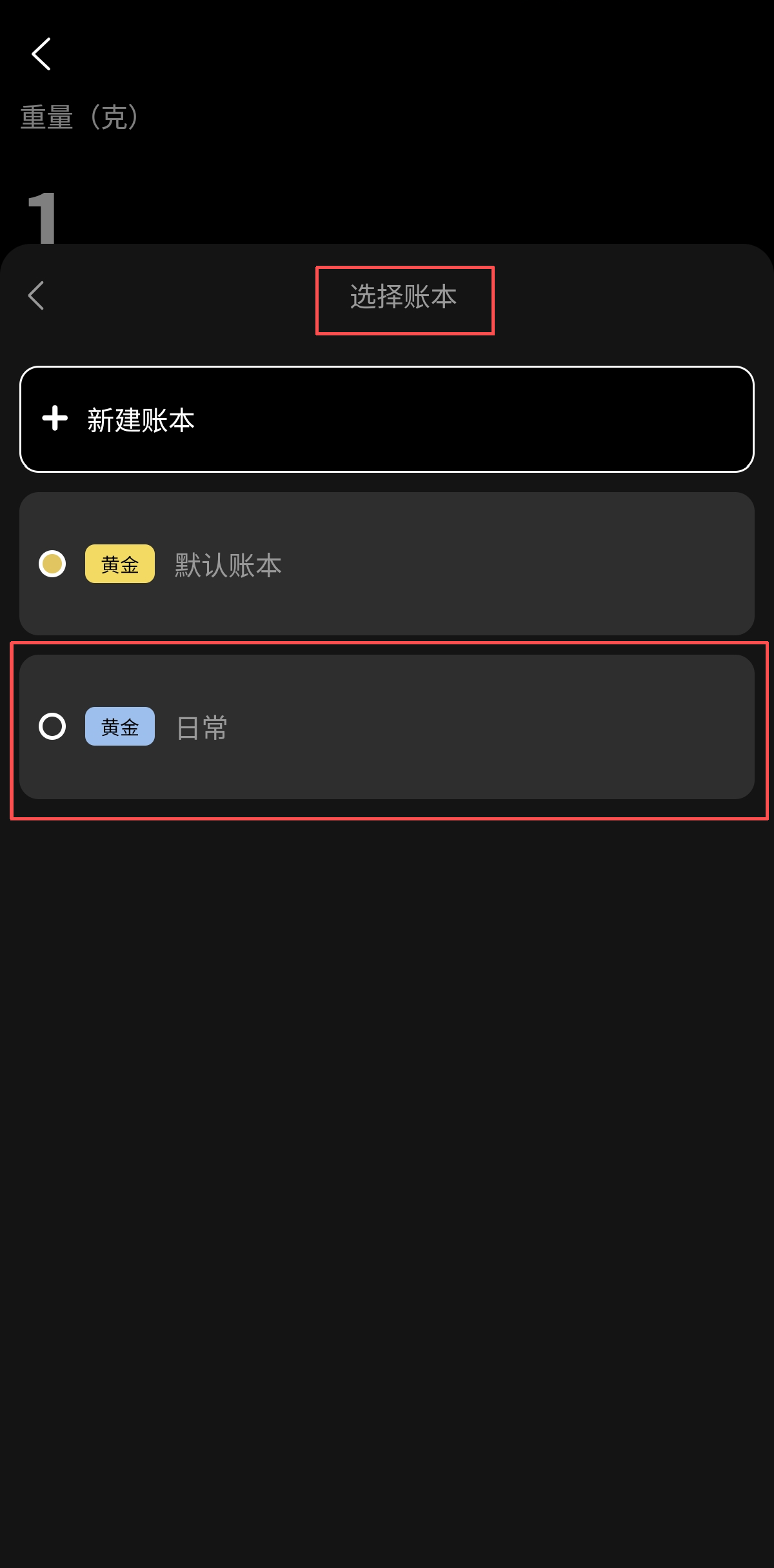 选择新建账本会重复以上操作,选择已新建立的其他账本可以直接将黄金记录更改到对应账本以便查看。