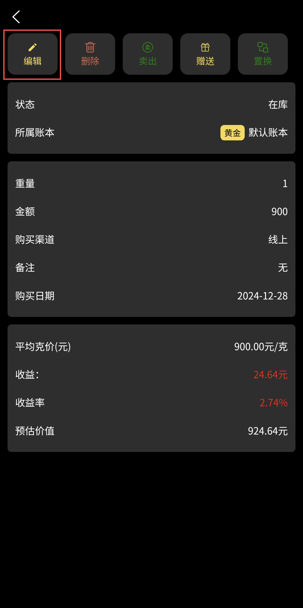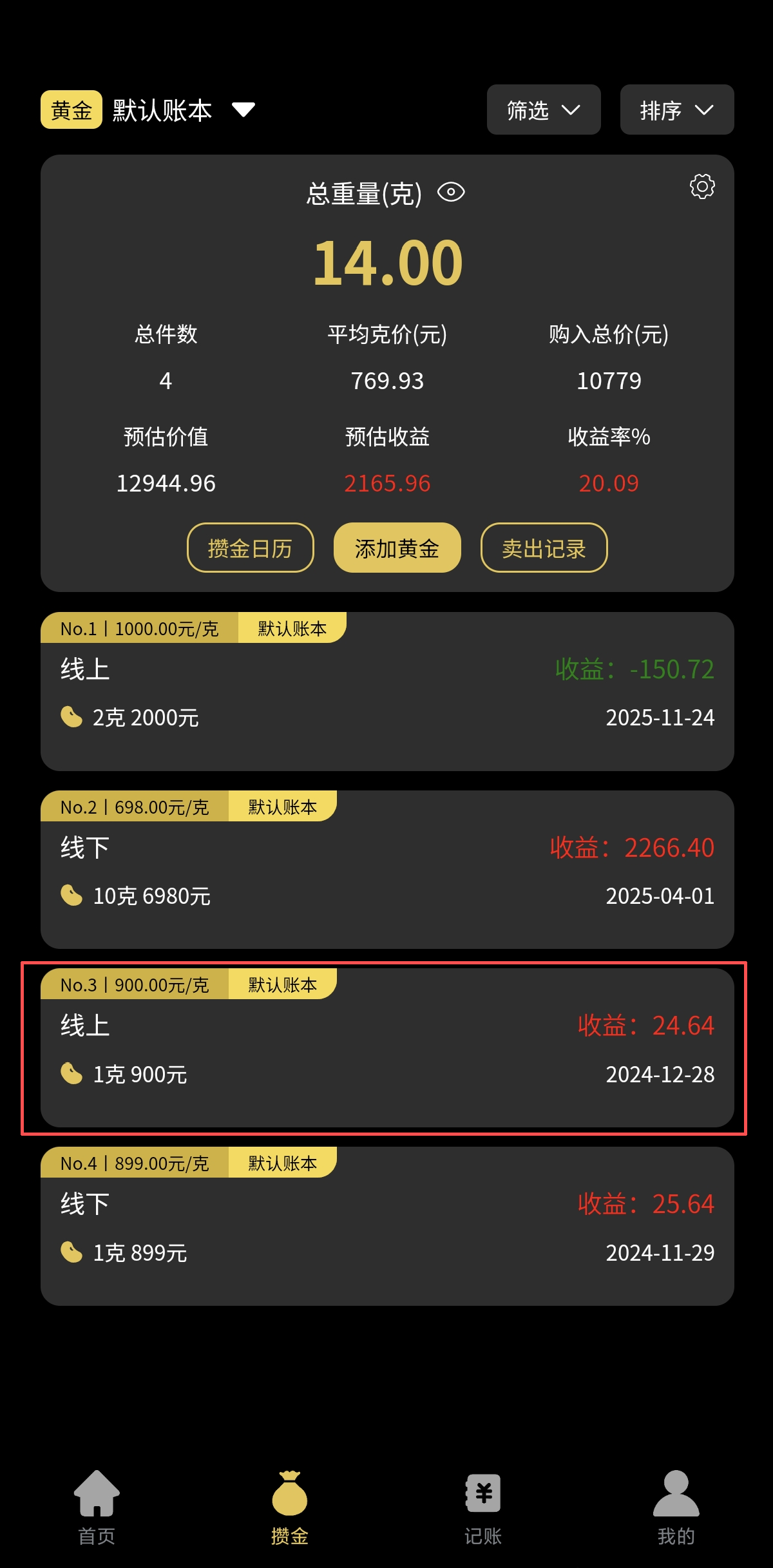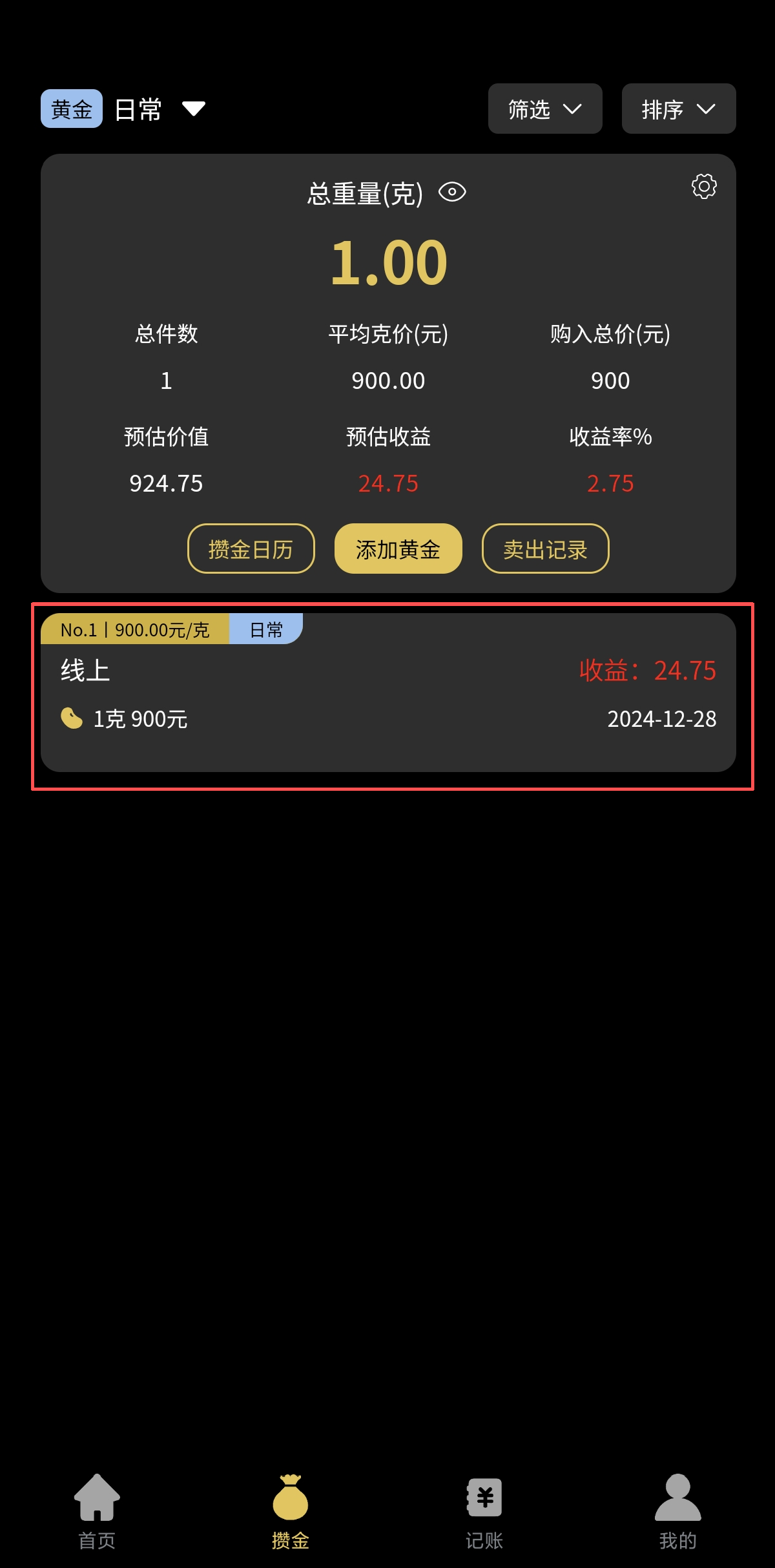 1.点击已登记的黄金记录