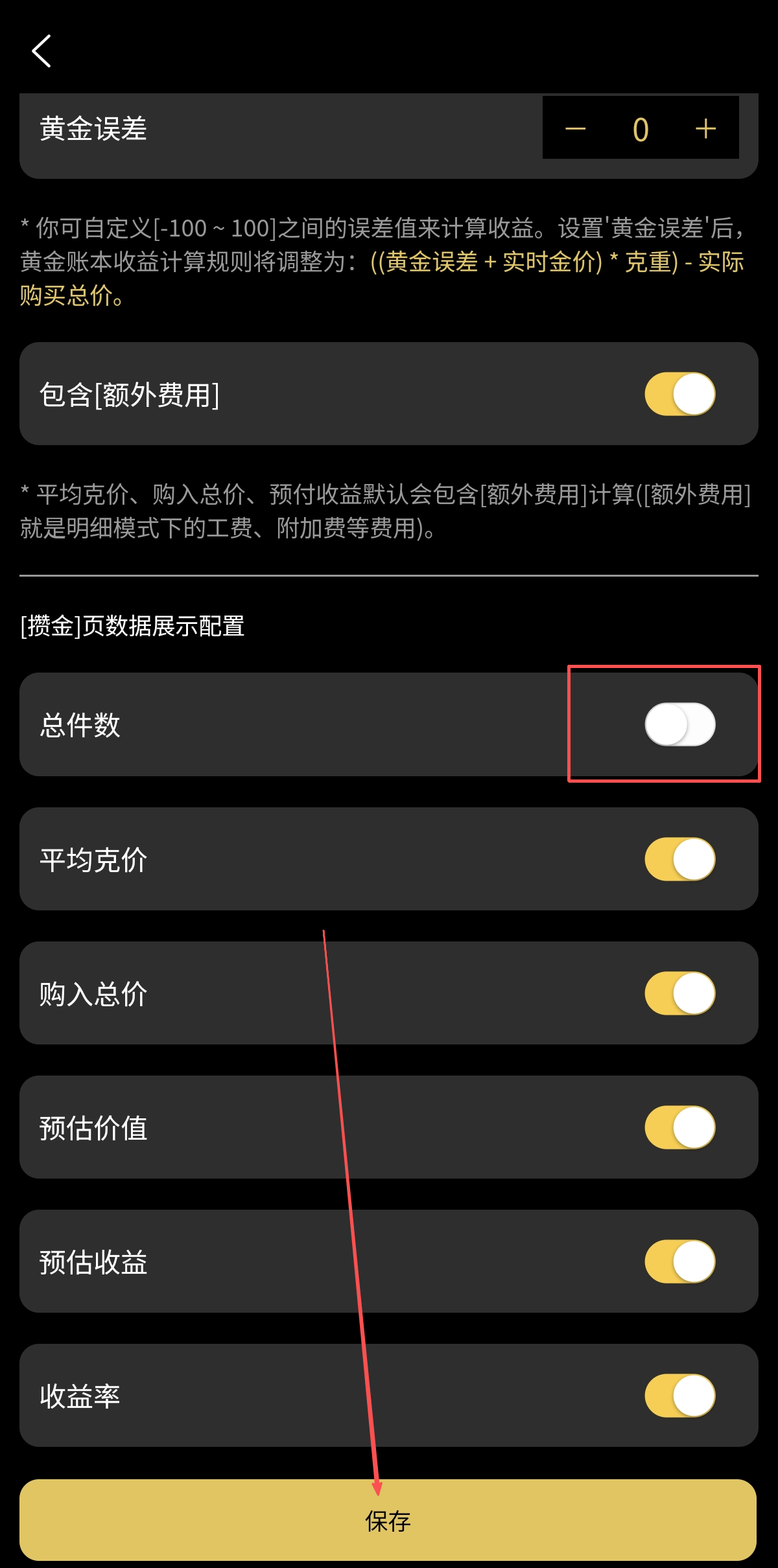 金价一指查如何自定义攒金页数据,金价一指查拥有简洁的APP界面方便用户进行金属价格查询,但如果用户觉得攒金页面还不够简洁,或者是不想出现太多详细的攒金情况,可以点击页面右上角的设置图标来进行攒金数据展示配置。这个设置页面有所有将会展现在攒金页的数据按钮,用户可以通过点击是否展示来设置自己的攒金数据,这样就可以隐藏一些不想展示的数据。后续如果想在攒金页方便查看数据的时候,在同一页面点击设置展示即可。那么下面就是攒金页数据展示设置的流程: