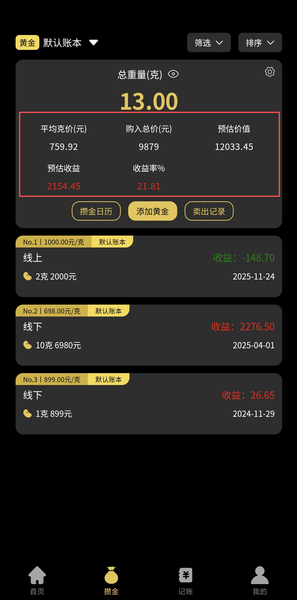 3.回到攒金页即可看到设置成功,后续在上一个页面点击同一位置即可恢复展示