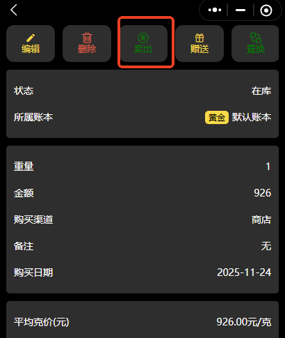 2.进入记录编辑页面后,即可看到“卖出”功能