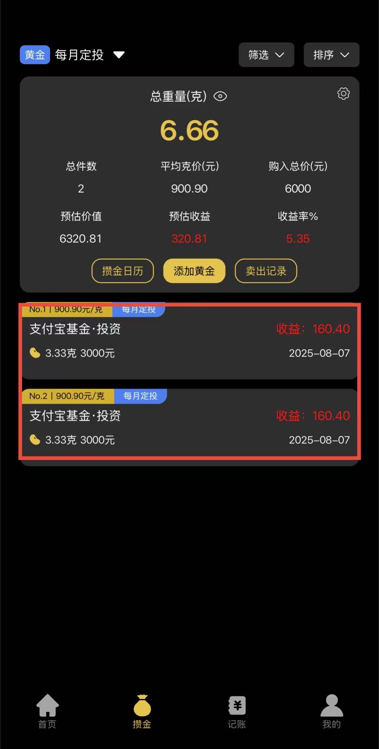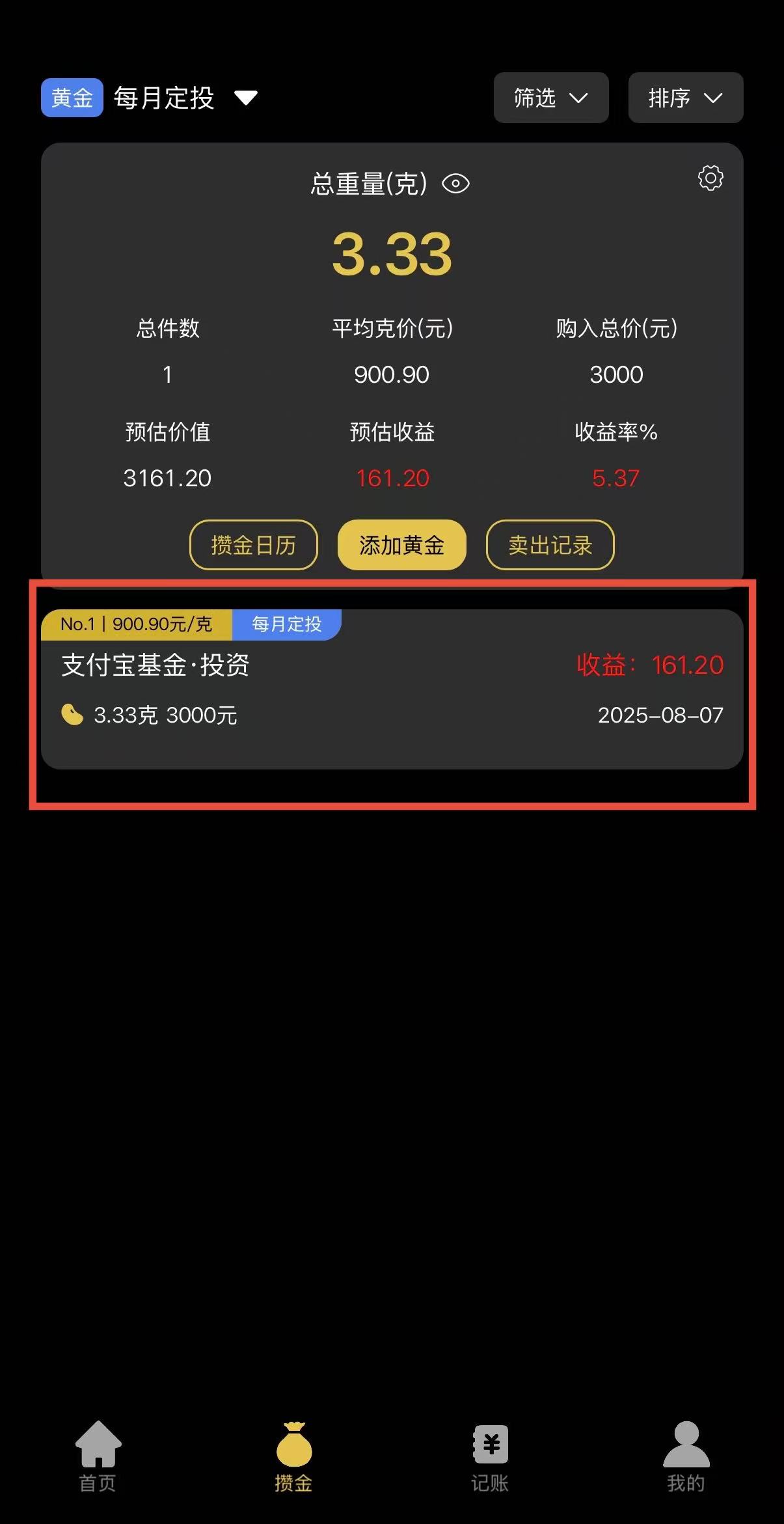 1.打开金价一指查,进入攒金界面,选择需要复制迁移的账本。