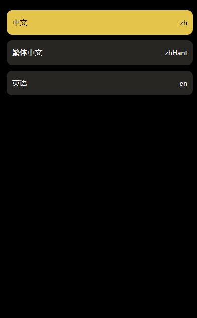 5.在语言切换选项中可以看到三种选项,点击想要切换的语言后,所选语言选项变为黄色按钮,即为设置成功。